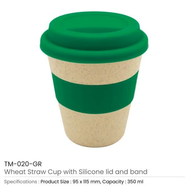 Discover eco-friendly promotional wheat straw cups in Abu Dhabi. Reusable, branded wheat straw cups for coffee, tea & giveaways. Custom screen printing available.